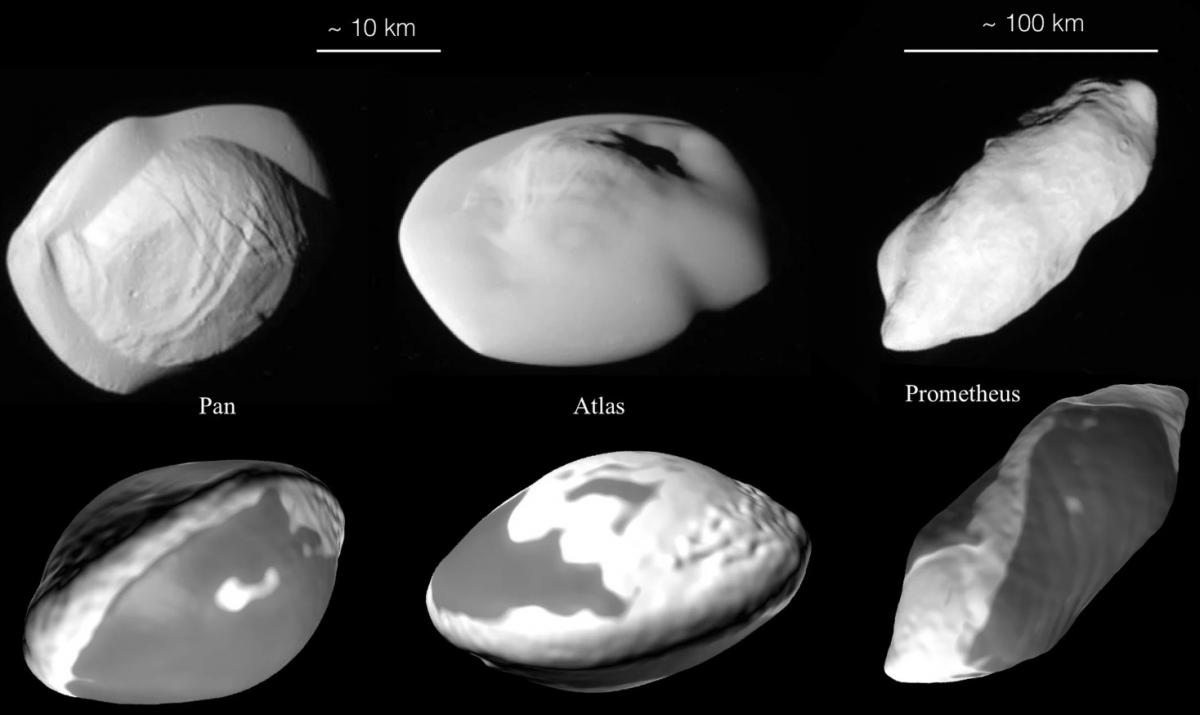 Saturnovy vnitřní měsíce mají poměrně neobvyklé tvary – některé se podobají bramborám, jiné připomínají vesmírné ravioly. Podle švýcarských vědců je tvar vnitřních měsíců dán specifickým prostředím obří planety.