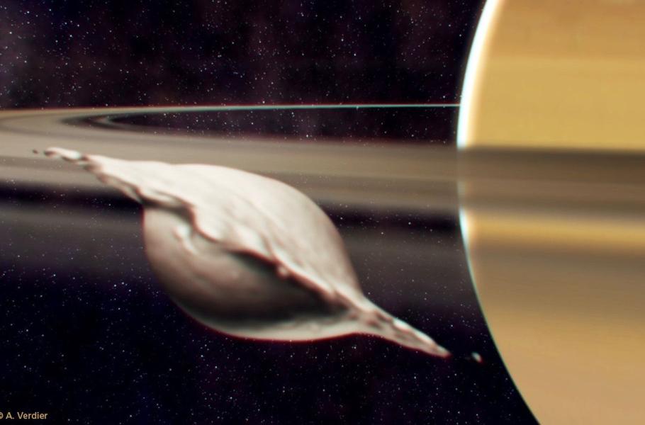 Saturn je 95× hmotnější než naše planeta a obří gravitační síla plynného obra vytváří pro okolní objekty velmi specifické prostředí. Měsíce jsou díky ní udržovány v takřka dokonale kruhových drahách. Počítačové simulace švýcarských vědců ukázaly, že většina Saturnových vnitřních měsíců vznikla srážkou dvou a více menších těles.