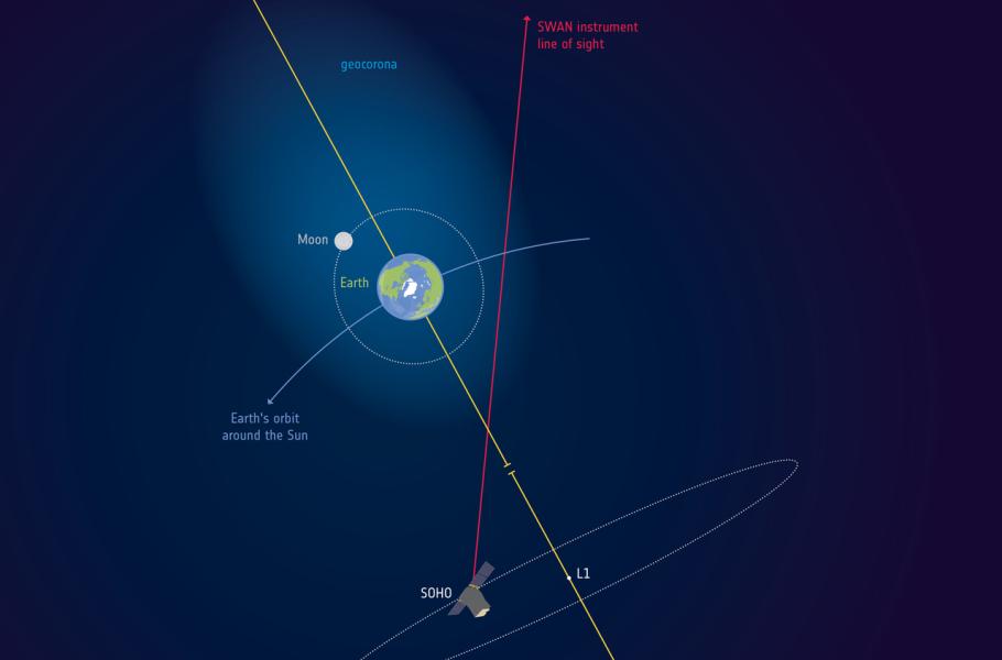 Data observatoře SOHO ukazují, že vnější vrstvy pozemské atmosféry, které jsou o něco málo hustší než okolní vesmírný prostor, dosahují skutečně daleko. Ukazuje se, že Měsíc na své oběžné dráze, vzdálené zhruba 384 tisíc kilometrů od Země, vlastně prochází atmosférou Země. V této vzdálenosti tvoří atmosféru především atomy vodíku, které zde jsou v hustotě pouhé 0,2 atomy na centimetr krychlový prostoru.