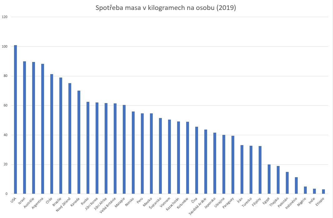 Tým vědců z univerzity v australském Perthu zjišťoval, jak se od počátku tisíciletí vyvíjela globální spotřeba masa. Analýza dat ze 35 států ukázala, že jeho zkonzumované množství je úměrné ekonomické úrovni dané země