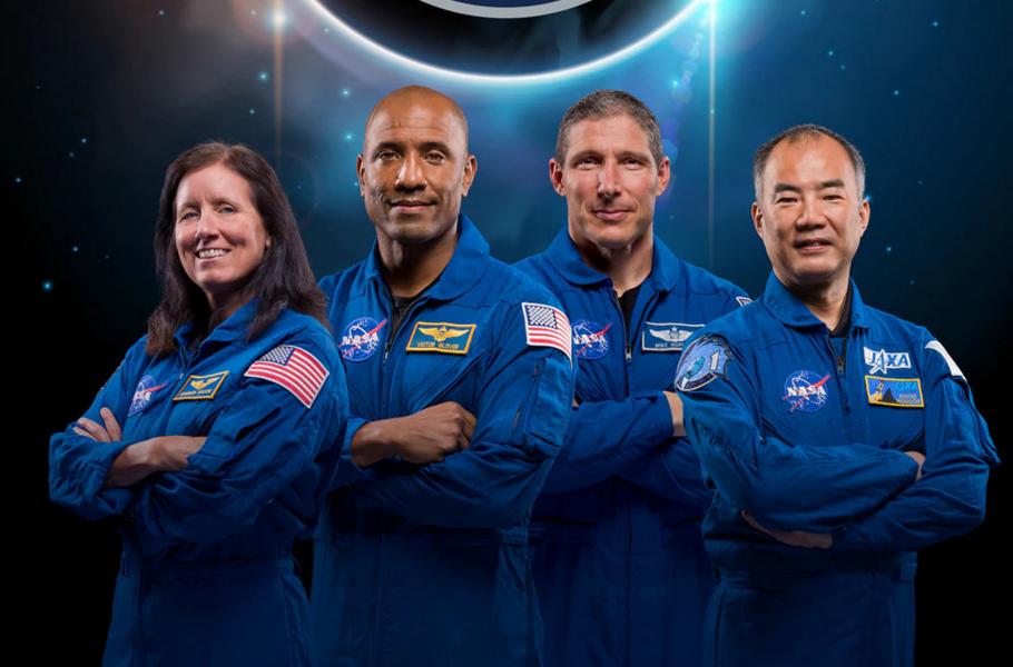 Po vyřazení raketoplánů ze služby v roce 2011 se pilotované mise opět omezily na dva či tři kosmonauty startující v Sojuzech. Teprve s nástupem nové kosmické lodi Dragon americké společnosti SpaceX mohou na ISS znovu cestovat čtyřčlenné posádky. Poprvé se tak stalo 16. listopadu 2020, kdy na stanici zamířili Michael Hopkins, Victor Glover, Shannon Walkerová a Japonec Soiči Noguči, přičemž ve vesmíru strávili 167 dnů. Jednalo se o první operační let americké lodi typu Crew Dragon, k jejímuž vynášení slouží Falcon 9. (foto: SpaceX, CC0)