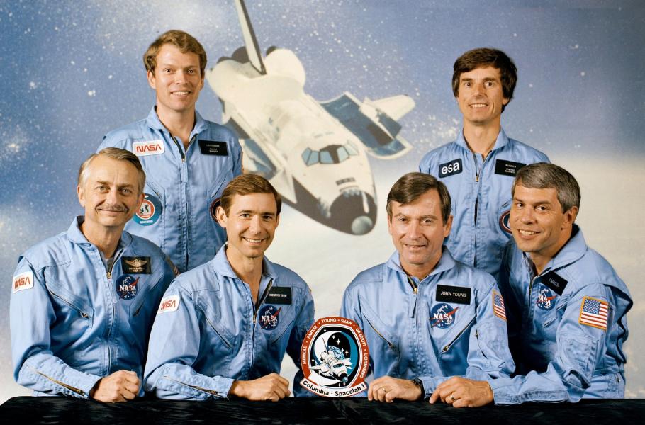 Raketoplán několikrát odstartoval s pěti astronauty a první šestičlenná posádka letěla při misi STS-9. Na palubě Columbie zamířili 28. listopadu 1983 do vesmíru Američané John Young, Brewster Shaw, Owen Garriott, Robert Parker, Byron Lichtenberg a Němec Ulf Merbold, zastupující Evropskou kosmickou agenturu. V nákladovém prostoru stroje byla instalována vědecká laboratoř Spacelab 1. Let zahrnoval 72 experimentů z oboru plazmové a sluneční fyziky, astronomie, technologie, astrobiologie či pozorování Země a trval 10 dnů a 6 hodin. (foto: NASA, CC0)