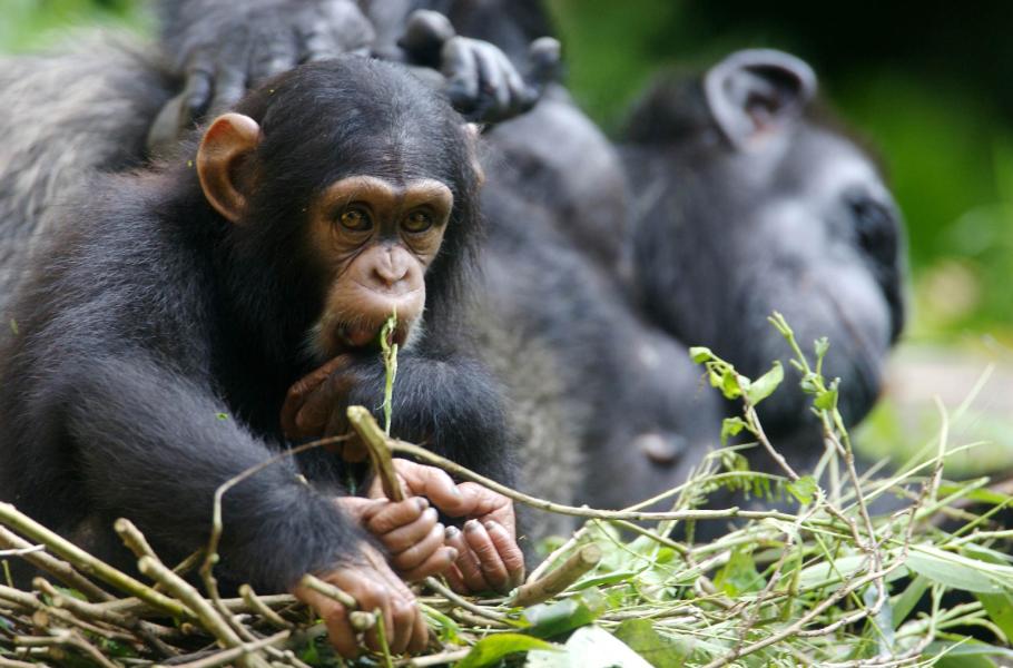Šimpanzi bez problémů poznají, že v zrcadle se ukazuje obraz jich samých. Z primátů si stejně dobře vedou bonobové, gorily, orangutani i mnohem menší jihoamerické opice kosmani. (foto: Shutterstock)