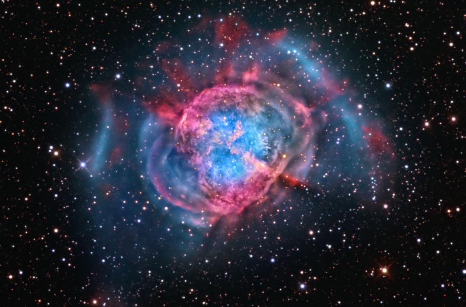 Pochopit fyziku a význam M27 zůstávalo ovšem mimo možnosti vědy 18. století. Dokonce i dnes tvoří planetární mlhoviny do značné míry záhadu – včetně mechanismu, jímž dochází k odvržení vnější plynové obálky hvězdy s nízkou hmotností, takže zbude horký bílý trpaslík. (foto: NASA, APOD, Matthew T. Russell, CC BY-SA 4.0)