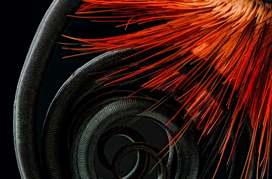 Netradiční pestrobarevný objekt vynesl páté místo Igoru Siwanowiczovi: Jedná se o část nohy potápníka vroubeného, jednoho z největších vodních brouků světa.