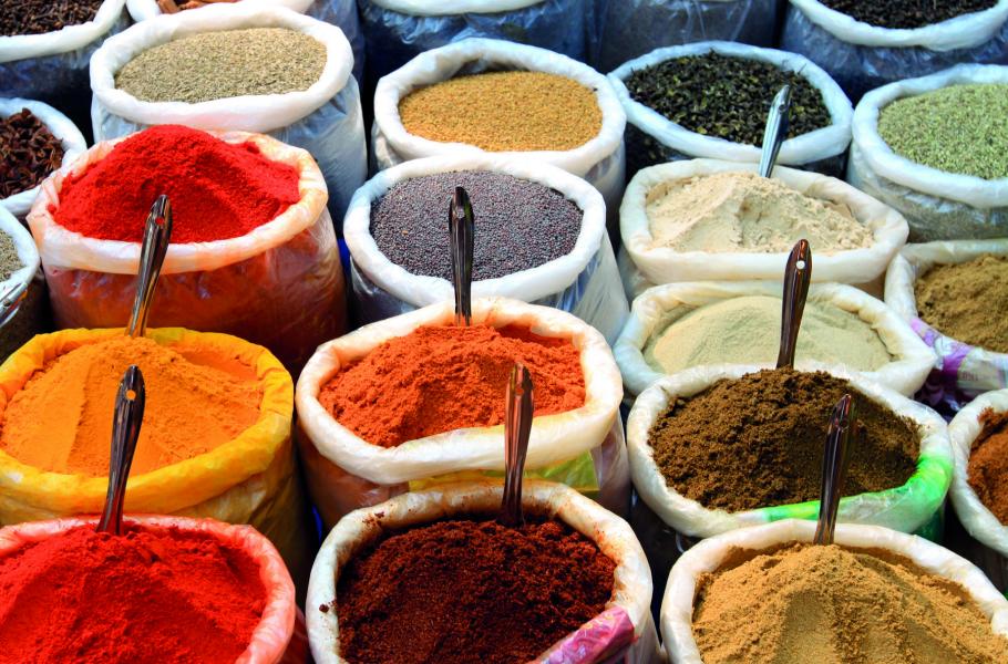 Zvláště pro trhy v Orientu je charakteristický po staletí neměnný způsob prodeje nejrůznějších druhů váženého koření.