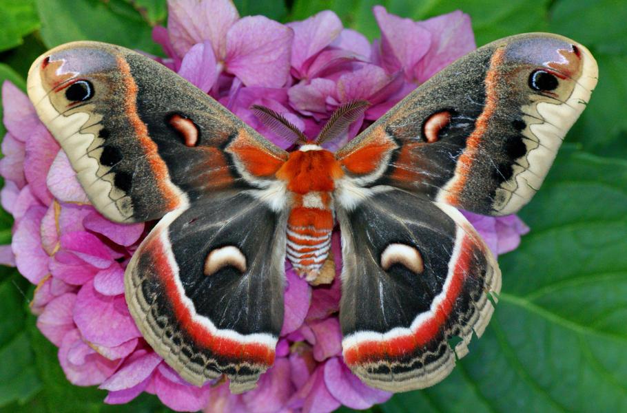 S rozpětím křídel až 16 centimetrů patří Hyalophora cecropia k největším nočním motýlům Severní Ameriky. Nádherně zbarvené jsou přitom už housenky, které se obvykle vyskytují na listech třešní, bříz či javorů. Zakuklí se vždy na podzim a motýli se pak klubou začátkem léta. (foto: Shutterstock)