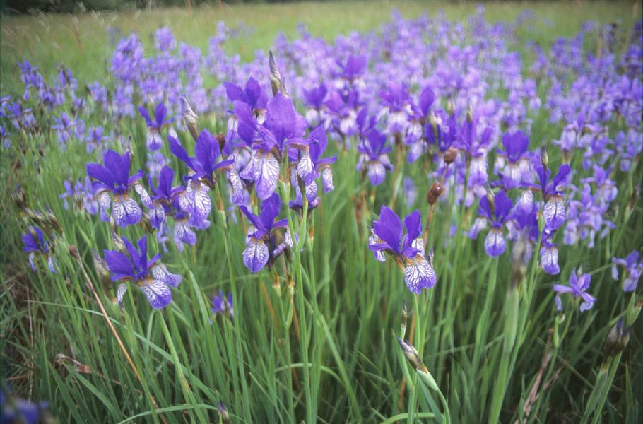 Velmi nápadným a ozdobným druhem je kosatec sibiřský (Iris sibirica). Má fialové květy s výrazným tmavým žilkováním, intenzita zbarvení varíruje od poměrně tmavé přes nebesky modrou do světlých odstínů, vzácně mohou být květy i bílé. V příznivých podmínkách může vytvářet velké trsy a při bohatém výskytu je louka v době jeho květu úplně fialová. Je mnohem štíhlejší než předchozí druh a listy mají našedlé zbarvení.