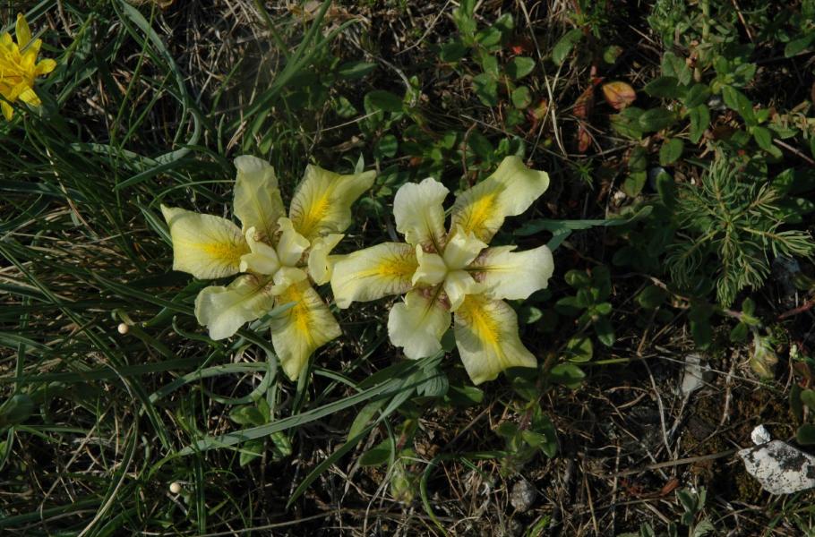 Kosatec různobarvý (Iris variegata) vás překvapí svou nádherou. Budete si udiveně říkat, že na tuhle stepní lokalitu musel utéci odněkud ze zahrádky. Je tu však doma, i když se Česká republika nachází na severozápadním okraji jeho areálu, takže původní je pouze na jižní Moravě, a to na Pálavě, na Pouzdřanské stepi, v okolí Znojma a Brna, v hodonínské Dúbravě a na sever zasahuje až na Prostějovsko. Na několika místech byl vysazen i v Čechách.