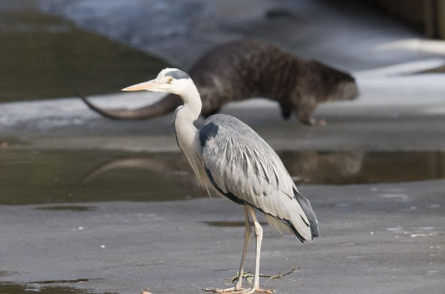 Vydry často nechávají ležet zbytky své kořisti na okraji ledu, čehož se naučily využívat volavky popelavé a orlové mořští. Někteří ptáci se na tento způsob získávání potravy přímo specializují. Vysedávají trpělivě v okolí pravidelných vydřích lovišť a požírají zbytky ryb, případně přímo na vydry útočí a pokoušejí se jim kořist sebrat. A to jak volavky, tak orli.