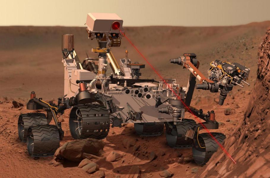 Dosud největší pojízdné laboratoře na Marsu představují Curiosity a Perseverance. První z nich přistála na tamním povrchu 6. srpna 2012 a nese mnohem víc vědeckých přístrojů než Opportunity. Jejím hlavním cílem je zjistit, zda na rudé planetě v minulosti existovaly podmínky pro výskyt mikrobiálních živých forem. Novější Perseverance zahájil průzkum Marsu v únoru 2021 a kromě 23 kamer nese na palubě i devět vědeckých přístrojů. Mezi jeho primární úkoly patří pátrání po stopách minulého života a shromažďování zajímavých vzorků určených pro budoucí dopravu na Zemi. (ilustrace: NASA/JPL-Caltech, CC0)