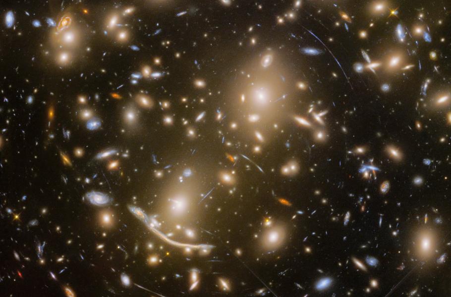 Exploze supernovy a čočkující kupa galaxií Abell 370. (foto: NASA, ESA/Hubble, HST Frontier Fields, CC BY-SA 4.0)