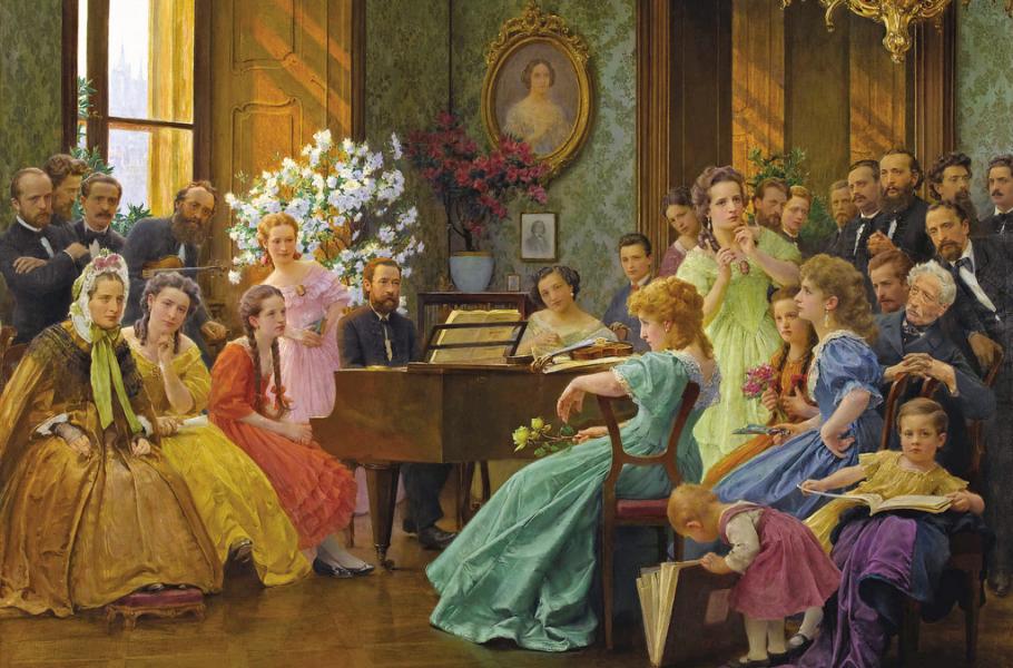 Bedřich Smetana mezi svými přáteli v roce 1865. Olej na plátně od Františka Dvořáka (1862-1927).