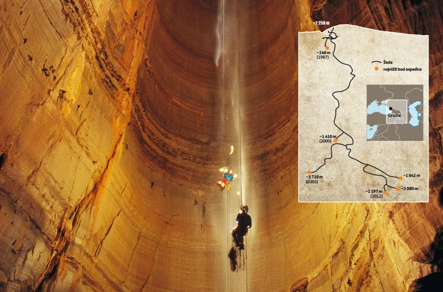 Dosud byly prozkoumány více než dva kilometry nejhlubší známé jeskyně světa. Její dno však sahá ještě mnohem hlouběji.