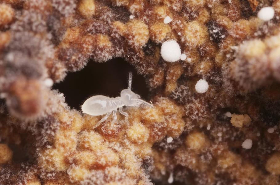 Tito drobní a ještě zcela bílí bílí termiti byli nejčastějšími návštěvníky houbových zahrad