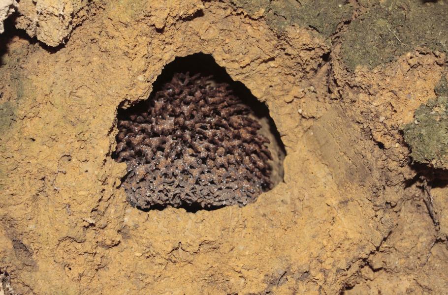 Při pobytu v Malajsii jsem měl možnost intenzivně pozorovat jednu z termitích staveb. Bylo to na místě vzdáleném několik kilometrů od naší stanice, kde si termiti v jílovité stěně podél lesní cesty zbudovali dokonalé podzemní sídliště. V materiálu ideální konzistence vytvořily armády drobného hmyzu kulaté komůrky, v jejichž středu je umístěna tzv. houbová zahrada. Jedná se o několikapodlažní dokonalou stavbu z rozkousaného a slinami spojeného organického materiálu. Takových houbových komůrek, jež jsou navzájem spojené důmyslným systémem chodeb, má jedna kolonie několik.
