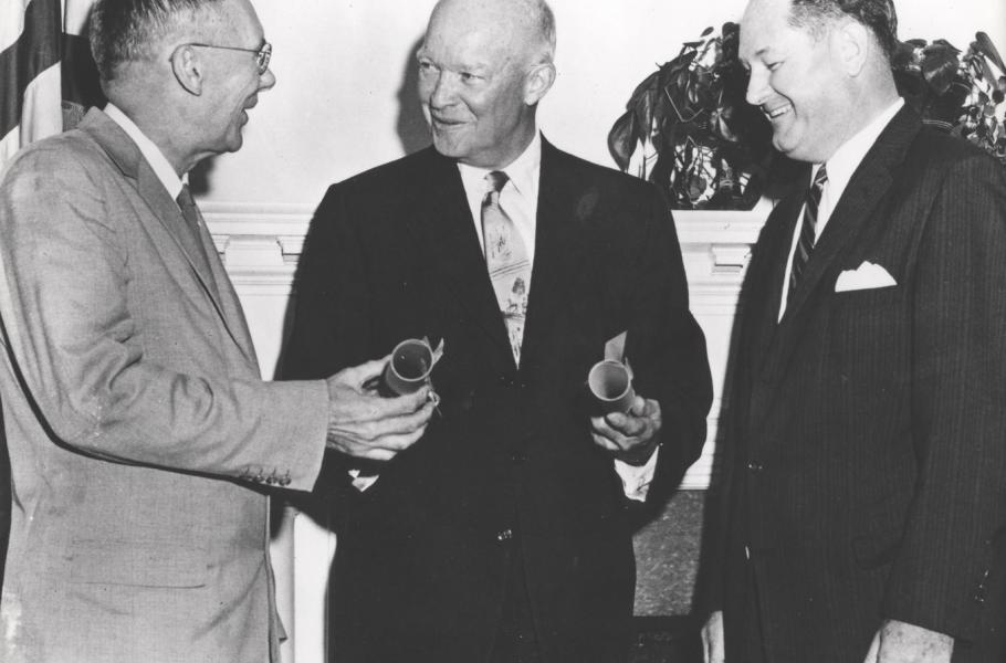 „Mělo by vejít do historie, že Sovětský svaz a Spojené státy vypustily své první družice ve stejném roce!“ žádal prezident. Nakonec rozhodl, že vznikne program využívání vesmíru nejméně na příštích pět let, a to včetně špionážních sond. Eisenhower považoval zpravodajské družice za nezbytné „nikoliv proto, že jsou Spojené státy agresivní, nýbrž proto, že Sovětský svaz je utajený“.