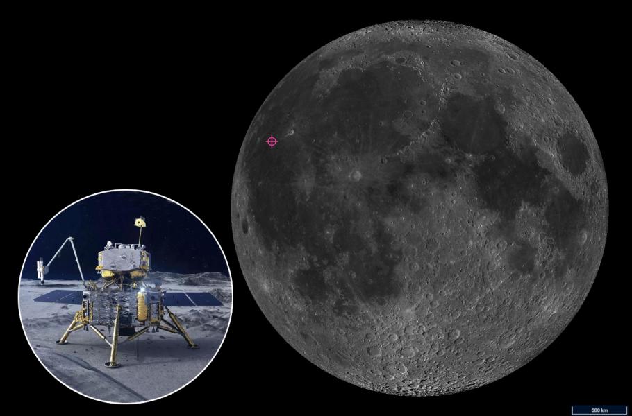 Oceanus Procellarum (česky Oceán bouří) - místo, kde čínská sonda Čchang-e 5 odebrala měsíční vzorky.