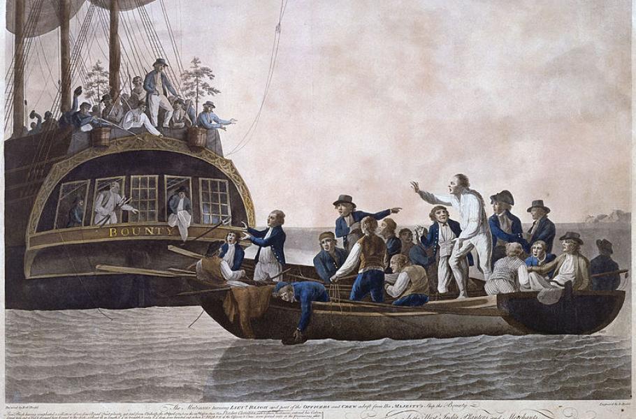 Původní cesta lodi Bounty za tahitskými chlebovníky se změnila ve vzpouru námořníků, která se dočkala nejednoho filmového zpracování. 28. dubna 1789 vysadila nespokojená posádka vedená poručíkem Fletcherem Christianem neoblíbeného kapitána Blighe s hrstkou jeho věrných na volném moři.