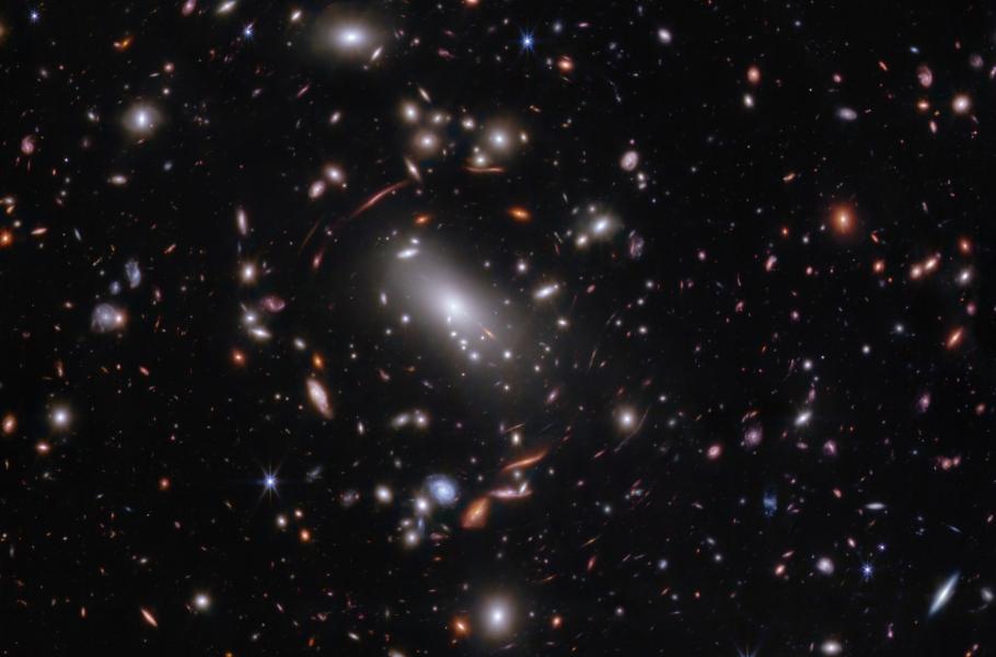 Snímek kupy galaxií MACS J1423 s galaxií Firefly Sparkle. (foto: NASA, ESA, CSA, STScI, C. Willott, L. Mowla, K. Iyer, CC BY-SA 4.0)