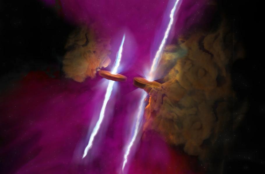 Detailní pozorování soustavy mračen Rho Ophiuchi vedla k překvapivému zjištění – hvězda WL 20S je ve skutečnosti dvojicí mladých hvězd s rovnoběžnými výtrysky hmoty.