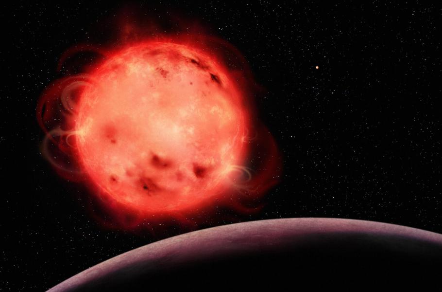 Umělecké ztvárnění blízkého červeného trpaslíka TRAPPIST-1. (ilustrace: Université de Montréal,Benoît Gougeon, CC BY-SA 4.0)