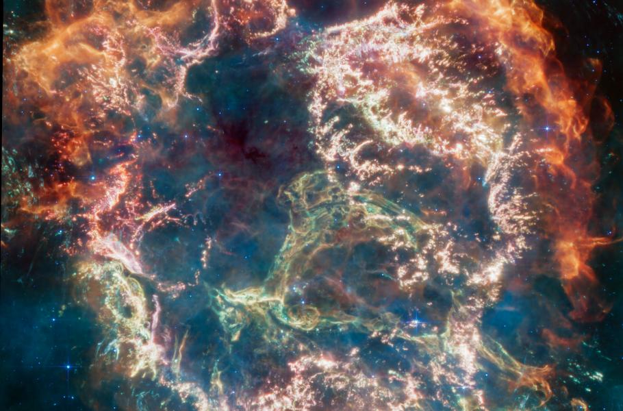 Výbuch supernovy je mimořádně dramatickou událostí. Pozůstatky, které po sobě hvězda zanechá, ale mohou být ještě dramatičtější. Dokládá to i nový infračervený snímek Vesmírného teleskopu Jamese Webba, který se tentokrát zaměřil na pozůstatek supernovy Cassiopeia A, vzniklý hvězdnou explozí před 340 lety. Cassiopeia A je nejmladším známým pozůstatkem explodující masivní hvězdy v naší galaxii, což z ní činí jedinečný zdroj informací o tom, jak takové supernovy vznikají.
