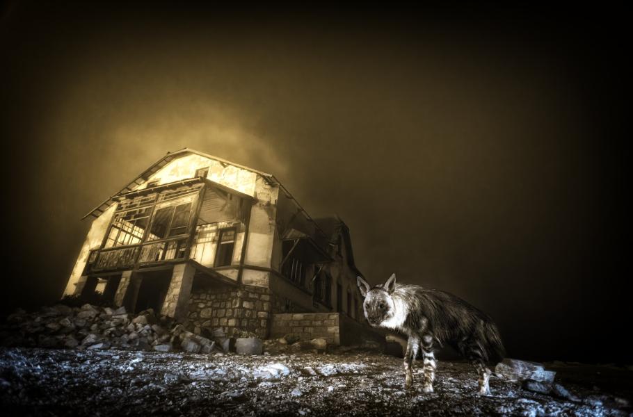 Na vítězný snímek soutěže čekal Wim van den Heever údajně deset let a zachytil na něm extrémně vzácnou hyenu čabrakovou. Jeho fotopast ji zastihla v opuštěném namibijském městě Kolmanskop, které utichlo spolu s lokálním těžebním průmyslem. (foto: WPotY, Wim van den Heever - se souhlasem k publikování)