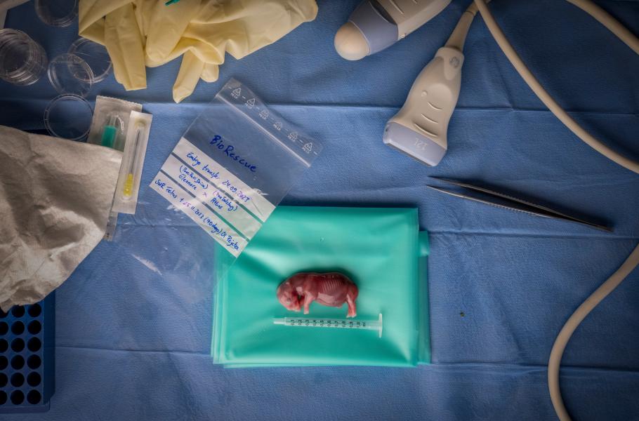 Jon A. Juárez byl přitom, když se uskutečnila historicky první implantace nosorožčího embrya do těla matky. Ačkoliv mládě nakonec podlehlo infekci, experiment dokazuje, že by se asistovaná reprodukce mohla stát nástrojem záchrany ohrožených tvorů. (foto: WPotY, Jon A. Juárez - se souhlasem k publikování)