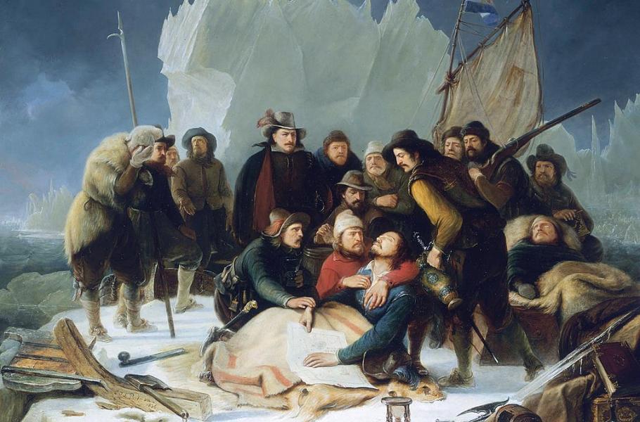 Smrt Willema Barentse v Arktidě. (ilustrace: Wikimedia Commons, Christiaan Julius Lodewijk Portman, PDM 1.0)