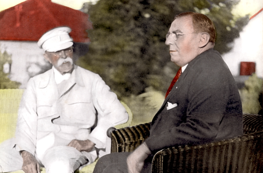 Starosta Chicaga Antonín Čermák během setkání s T. G. Masarykem ve slovenské Bystřičce, kde prezident v malebné krajině pod Fatrou trávil letní dovolenou.