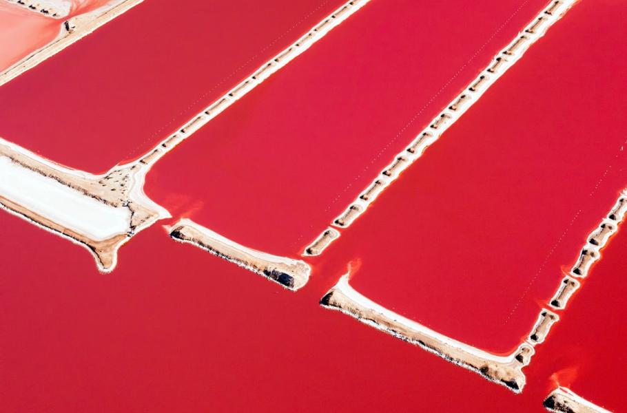 Toto není fotka atletického oválu ani bazén na nádvoří chemičky. Rudou barvu vody způsobují řasy, které se v těchto lagunách pěstují. Slaná voda Hutt Lagoon hostí největší farmu podobného typu na světě. Vypěstované řasy jsou především zdrojem beta-karotenu, který se využívá jako potravinářské barvivo i potravinový doplněk (označuje se také jako provitamín A).