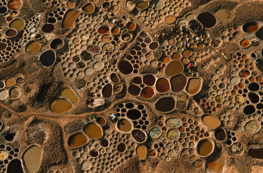 Z výšky připomínají tyto bazénky poblíž vesničky Teguidda-n-Tessoumt v Nigeru fantastickou mozaiku. Dělníci sem přečerpávají slanou vodu z mělkých studen a nechávají ji odpařovat, zbylou sůl pak prodávají. Odstín bazénků závisí mimo jiné na barvě přítomných řas a množství soli, která tuhne na povrchu.