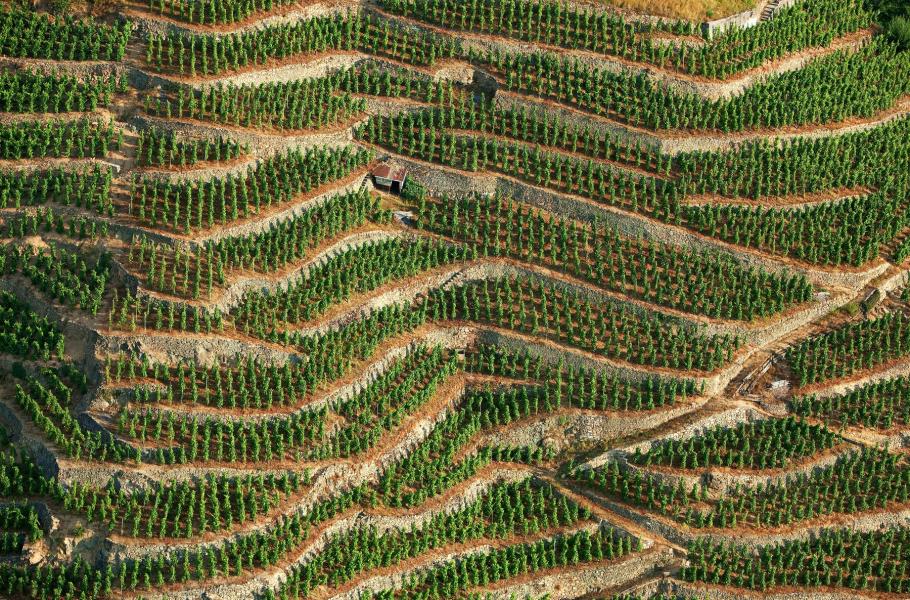 Terasovité vinice jsou na celém světě velmi podobné. Tyto se nacházejí ve Francii a rostou na nich velmi zajímavá vína. Tamní kopce shlížejí přímo do údolí řeky Rhôny u Ampuis. Jde o jednu z nejstarších vinic Côte-Rôtie (což volně přeloženo znamená „opékané svahy“). Nedostatkem slunce rozhodně netrpí a sklon svahů místy dosahuje až 60 %.