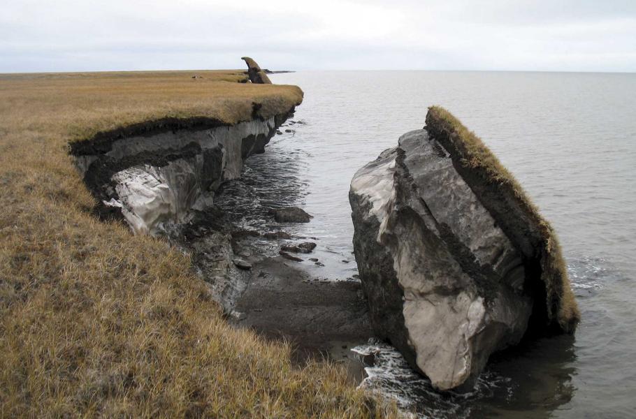 Tající permafrost na pobřeží Aljašky. (foto: Wikimedia Commons, U.S. Geological Survey, Benjamin Jones, , PDM 1.0)