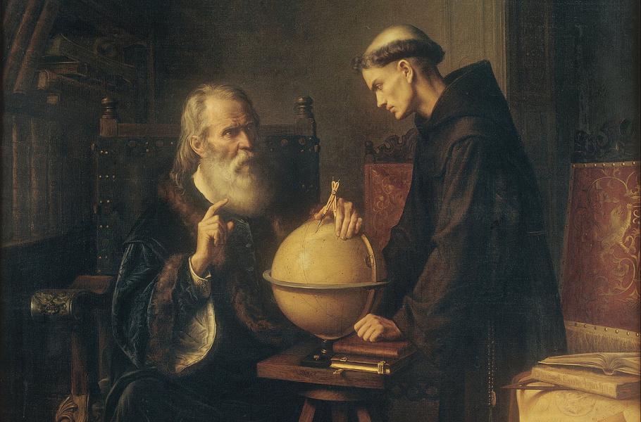 Galileo Galilei vysvětluje své teorie na univerzitě v Padově. (ilustrace: Wikimedia Commons, Félix Parra, CC0)