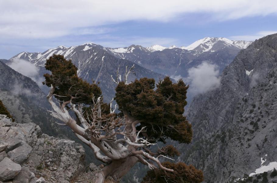 Na okraji náhorní plošiny Omalos je vchod do obrovské skalní rokle Samaria, jedné z nejdelších soutěsek v Evropě, která končí až u moře. Do a z jejího „ústí“ se lze dostat jen lodí. Rokle je přístupná od začátku května do konce října a pokud se na její začátek (či konec, záleží na úhlu pohledu) dopravíte po moři, můžete odtud stoupat vzhůru do okolních hor. Touto cestou jsme se vydali i my a mohli jsme podél ní obdivovat kvetoucí endemické šafrány Crocus sieberi, modré tařičky kosníkovité (Aubrieta deltoidea) a ve skalní štěrbině pryskyřník Ranunculus gracilis. Zaujal nás také vodorovný cypřiš vždyzelený (Cupressus sempervirens var. horizontalis), který je možná starý i několik tisíc let a mohl tedy růst už v době, kdy byli v Egyptě faraoni. Tento cypřiš, na rozdíl od pyramidální variety, která je běžná třeba v Itálii, roste více do šířky než do výšky.