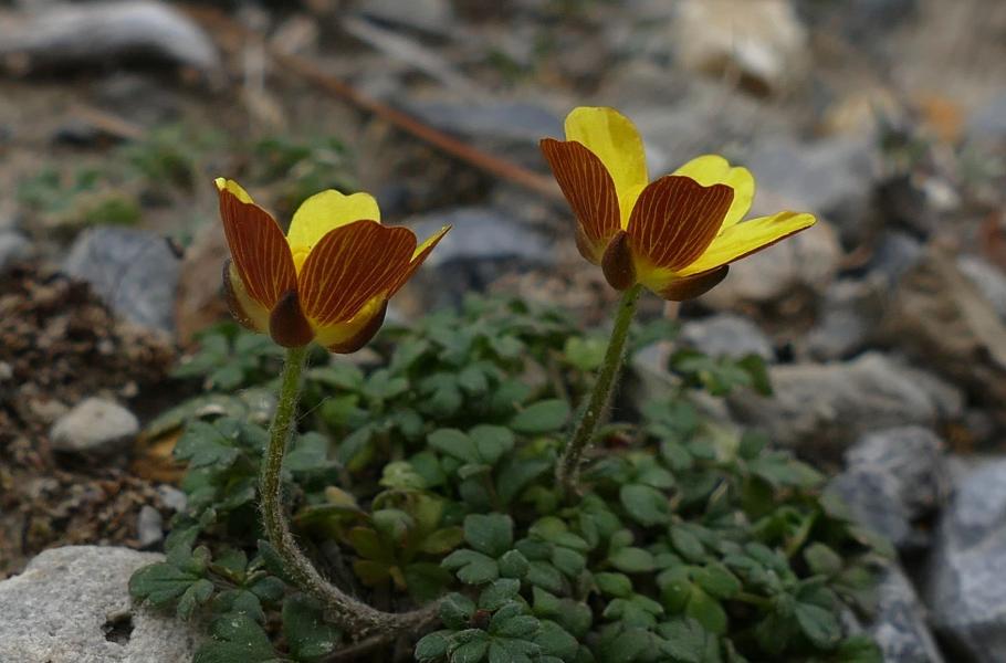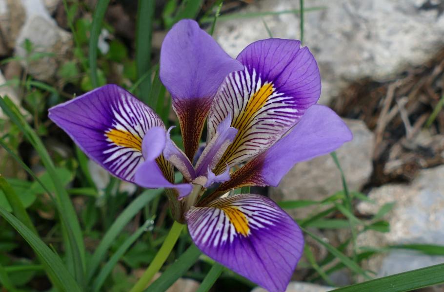Z nižších planin jsem se vydali do pohoří Thripti, jehož nejvyšší vrchol Stavromenos sahá do výšky 1 476 m n. m. Už po cestě na vrchol jsme obdivovali další krétské endemity – poddruh nízkého kosatce Iris unguicularis subsp. cretensis a na Krétě nejmenší tulipán Tulipa cretica. Kousek pod vrcholem jsme narazili na pryskyřník měďnatý (Ranunculus cupreus), další endemit, který je zřejmě pojmenovaný podle barvy spodních částí květů.