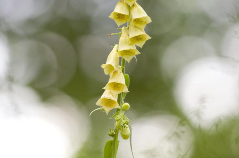 Sedím před více než metr vysokými bylinami a zamyšleně se dívám na žluté, uvnitř hnědě kropenaté zvonky, na které občas přiletí sát čmeláci. Květy jsou jemně ochlupené a rostou víceméně namačkány v jednostranném hroznu na vzpřímené lodyze. Občas zafouká vítr a rostliny se zakymácí. Hned se ale zas ustálí a dál bez pohybu a mlčenlivě na mě spatra shlíží.