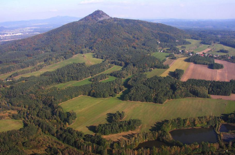 Ralská pahorkatina a její nejvyšší vrchol – hora Ralsko (696 m). (foto: Wikimedia Commons, Mirek256, CC BY-SA 3.0)