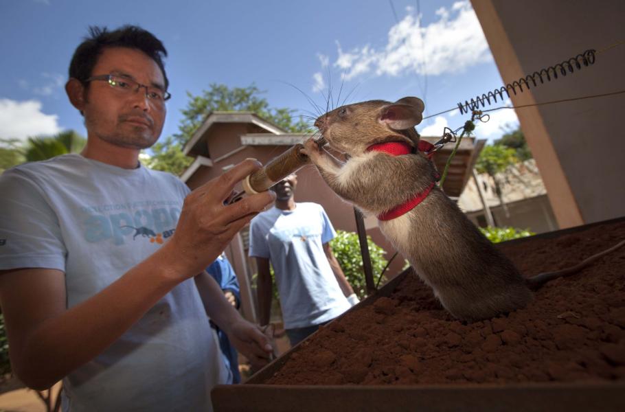 Jako zvířecí zachránce lidských životů si zřejmě v prvé řadě představíme bernardýny se soudkem rumu. Speciálně vycvičené krysy obrovské, už 20 let využívané především v Africe pro hledání min a diagnostiku tuberkulózy, přitom mají na svém kontě bezpochyby mnohonásobně větší množství zachráněných
