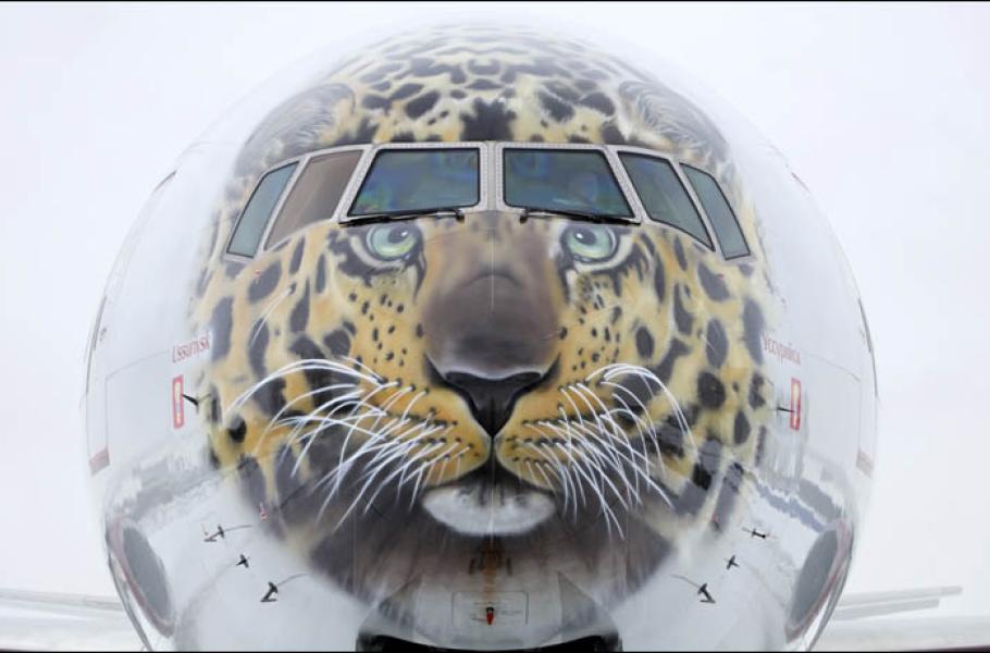 Jeden z Boeingů 777 ruských aerolinek získal neobvyklou výzdobu. Čumák letadla zdobí tvář kriticky ohroženého levharta mandžuského. Počet těchto šelem ve volné přírodě se odhaduje na pouhých 80 jedinců a 176 dalších žije v zajetí. V Česku jsou tyto nádherné šelmy k vidění v zoologické zahradě v Praze a v Olomouci. Levhart mandžuský je nejseverněji žijící poddruh levharta. Vyskytuje se v Asii na ruském Dálném východě na pomezí Ruska, Číny a Severní Koreje.