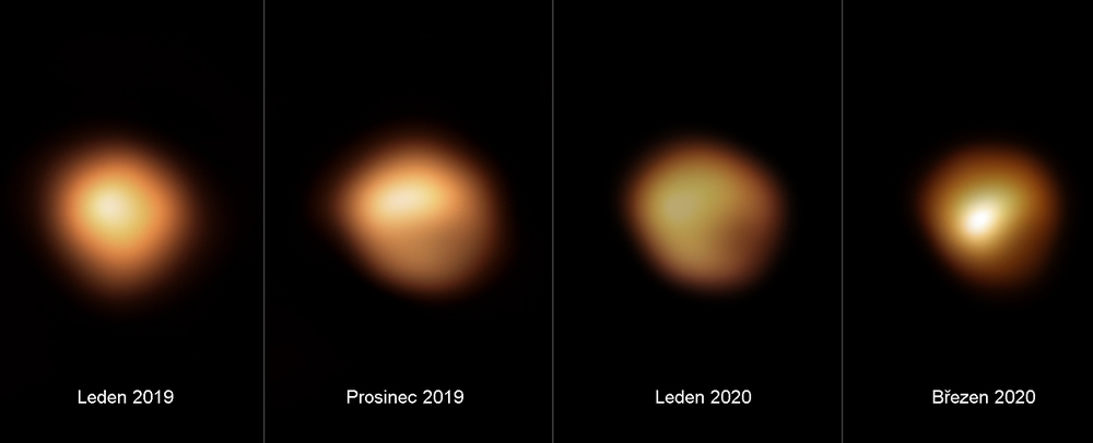 Snímky pořízené přístrojem SPHERE na dalekohledu VLT zachycují povrchové vrstvy rudého veleobra Betelgeuse během období výrazného snížení jasnosti na konci roku 2019 a začátku roku 2020. Jasnost Betelgeuse se vrátila k normálu v dubnu 2020.