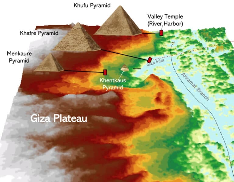 Cheopsovu pyramidu, největší a nejznámější stavbu v egyptské Gíze, tvoří víc než dva miliony kamenných bloků, z nichž každý váží 2,5–15 tun. Není divu, že způsob přepravy takového množství těžkého stavebního materiálu už dlouhou dobu dráždí lidskou představivost. Moderní věda postupně přinášela různé teorie, jež se v poslední době stále častěji vracejí k nejlogičtějšímu vysvětlení: Obří kvádry se nepřesouvaly po souši, ale po vodě. Okolo pyramid se sice rozkládá vyprahlá poušť a od nejbližšího ramene Nilu ji dělí osm kilometrů – nicméně poslední výzkumy ukazují, že v minulosti tomu mohlo být jinak.