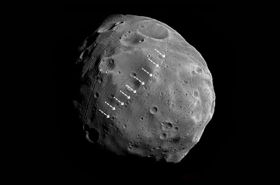 A neobvyklé jsou i krátery, které jsou patrné na povrchu Phobosu. Některé z nich jsou uspořádány do řad. Jak ale takové unikátní řetězce kráterů mohly vzniknout?