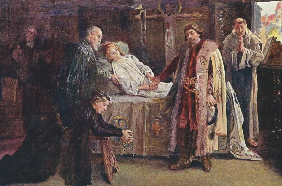 Ladislav Pohrobek na smrtelném loži děkuje zemskému správci Jiřímu Poděbradskému. (foto: Wikimedia Commons, ΑΩ institut, CC0)