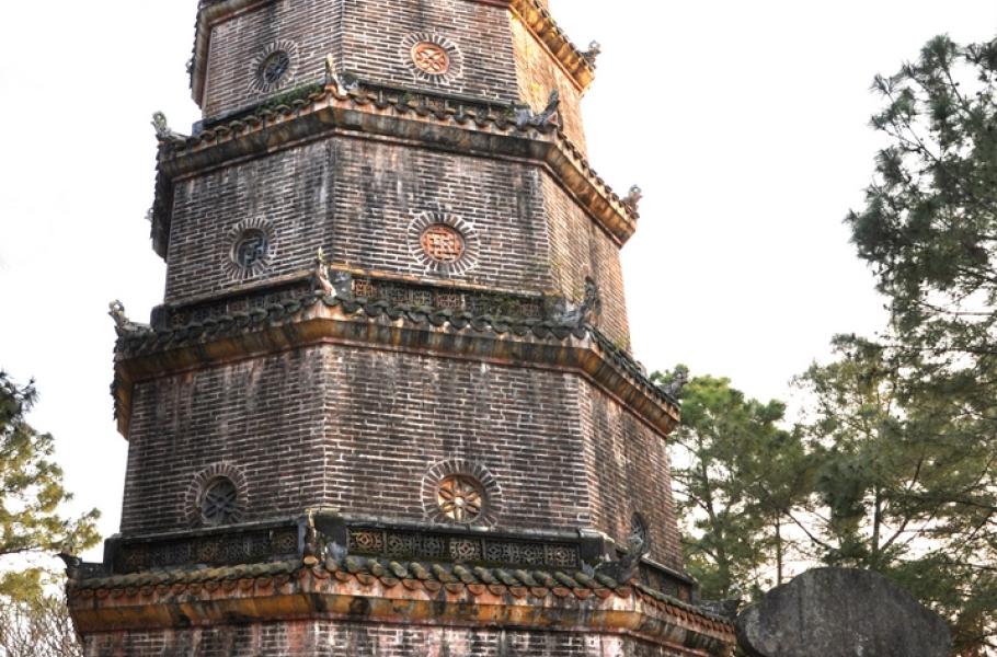 Také k významnému svatostánku The Mieu se vchází kamennou bránou s mytickými ptáky, rybami a mincemi, přičemž se jedná zřejmě o nejkrásnější portál v celém Hue. Chrám nechal v první polovině 19. století postavit císař Minh Mang a hlavním cílem tu není jen buddhistické rozjímání, ale rovněž uctění památky předků a oslava rodokmenu. Před vstupem se nachází devět obrovských tepaných bronzových uren, jež patřily prvním císařům dynastie Nguyen.