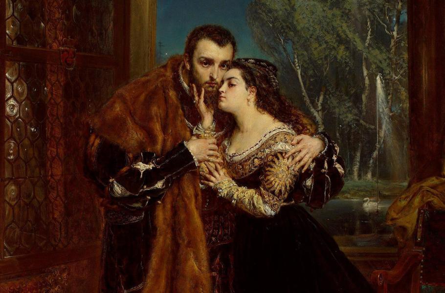 Zikmund II. August a Barbora Radziwiłłovna na dvoře Radziwiłłů ve Vilniusu. Obraz polského malíře Jana Matejka z roku 1867.