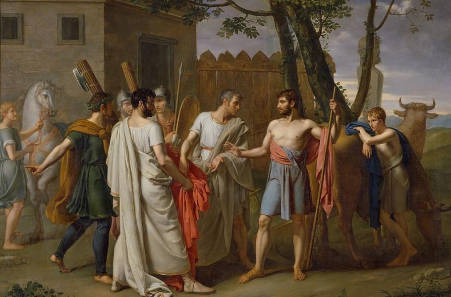 Naší pozornosti by však neměla uniknout ani antická inspirace. I Římané totiž měli svého vládce povolaného od pluhu a aranžmá celé scény bylo vlastně hodně podobné. Poslové s odznaky moci, zdráhající se muž i opuštění voli. V římské pověsti se vládce jmenoval Lucius Quinctius Cincinnatus a šlo o pololegendární postavu, která ztělesňovala římské ctnosti. Tento hrdina byl v případě potřeby připraven převzít odpovědnost, ale moc ho nekorumpovala a rád se vrátil k prostému životu.