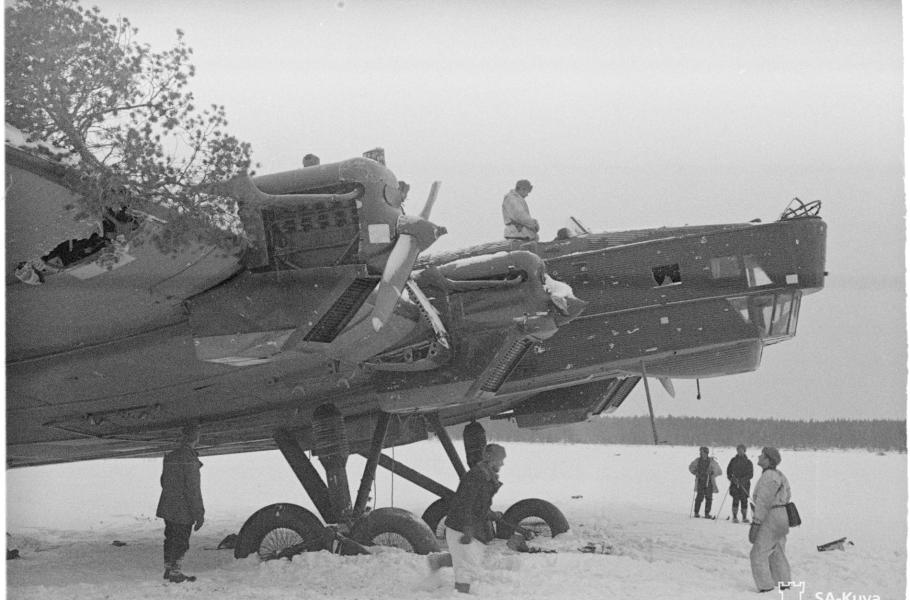 Čtyřmotorový TB-3 byl charakteristický mimo jiné i nekrytými pozicemi osádky, tento stroj skončil v rukou Finů.